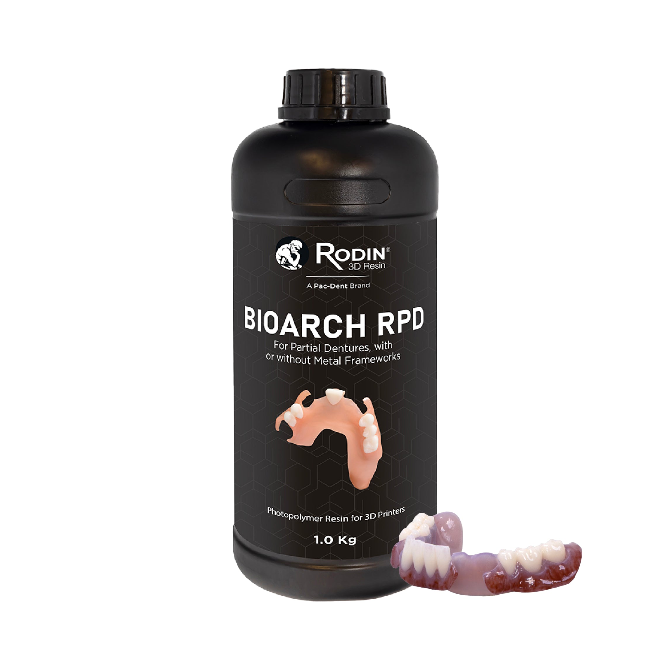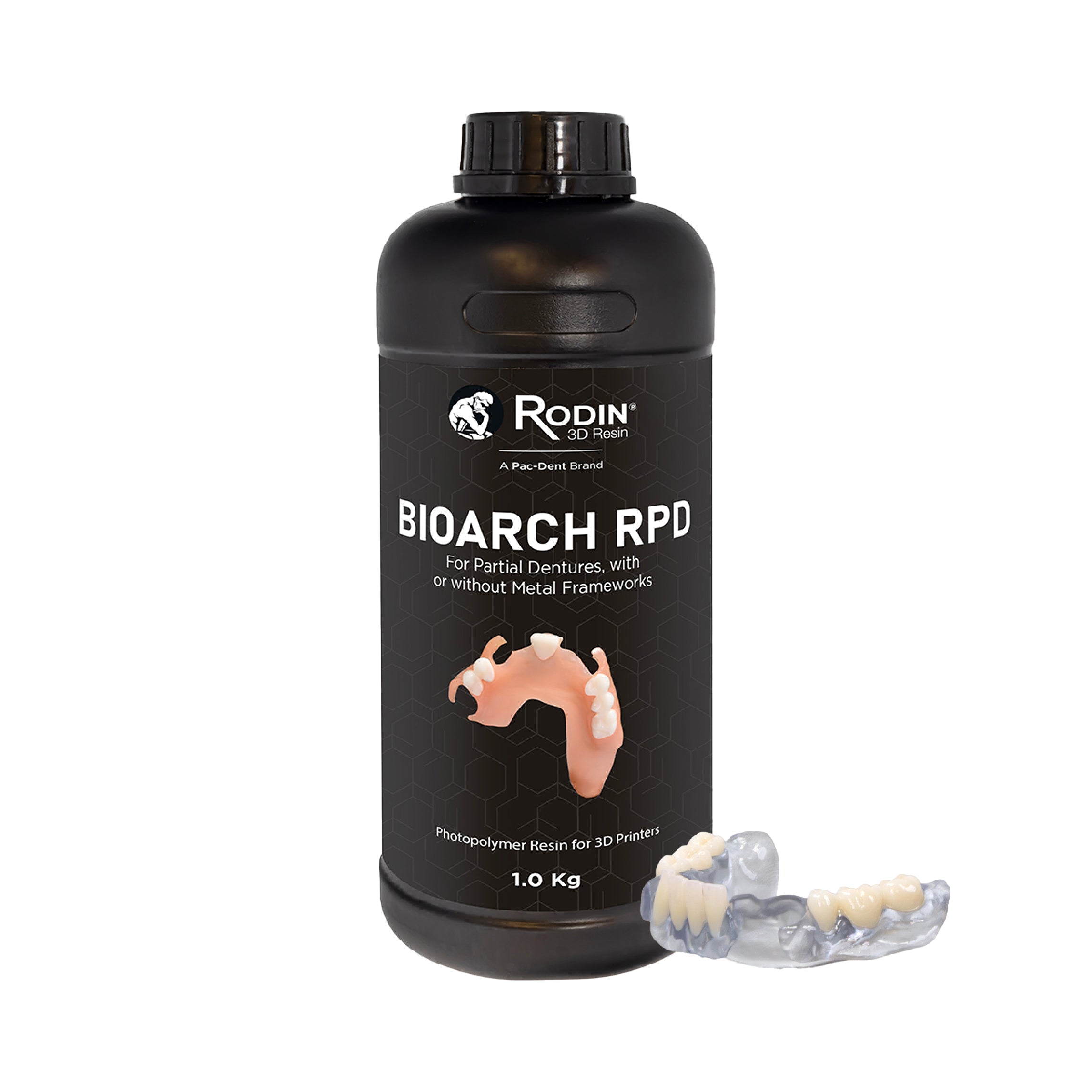 Rodin® BioArch™ RPD is a high-strength 3D printing resin designed for durable, comfortable removable partial dentures. Its advanced formulation combines rigidity and controlled flex, allowing easy insertion over undercuts while maintaining long-term stability and fatigue resistance.